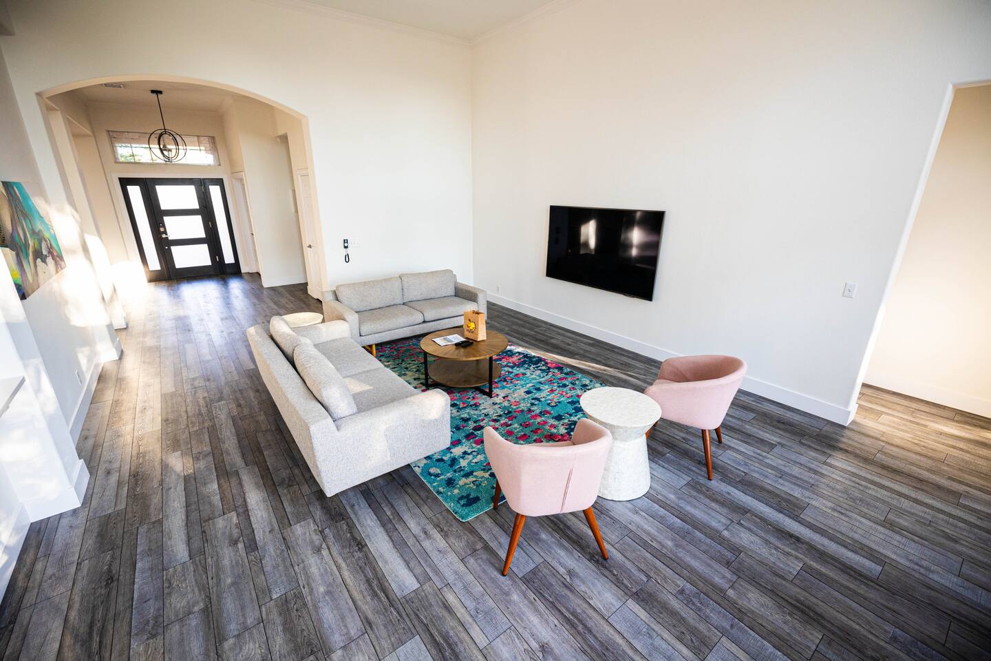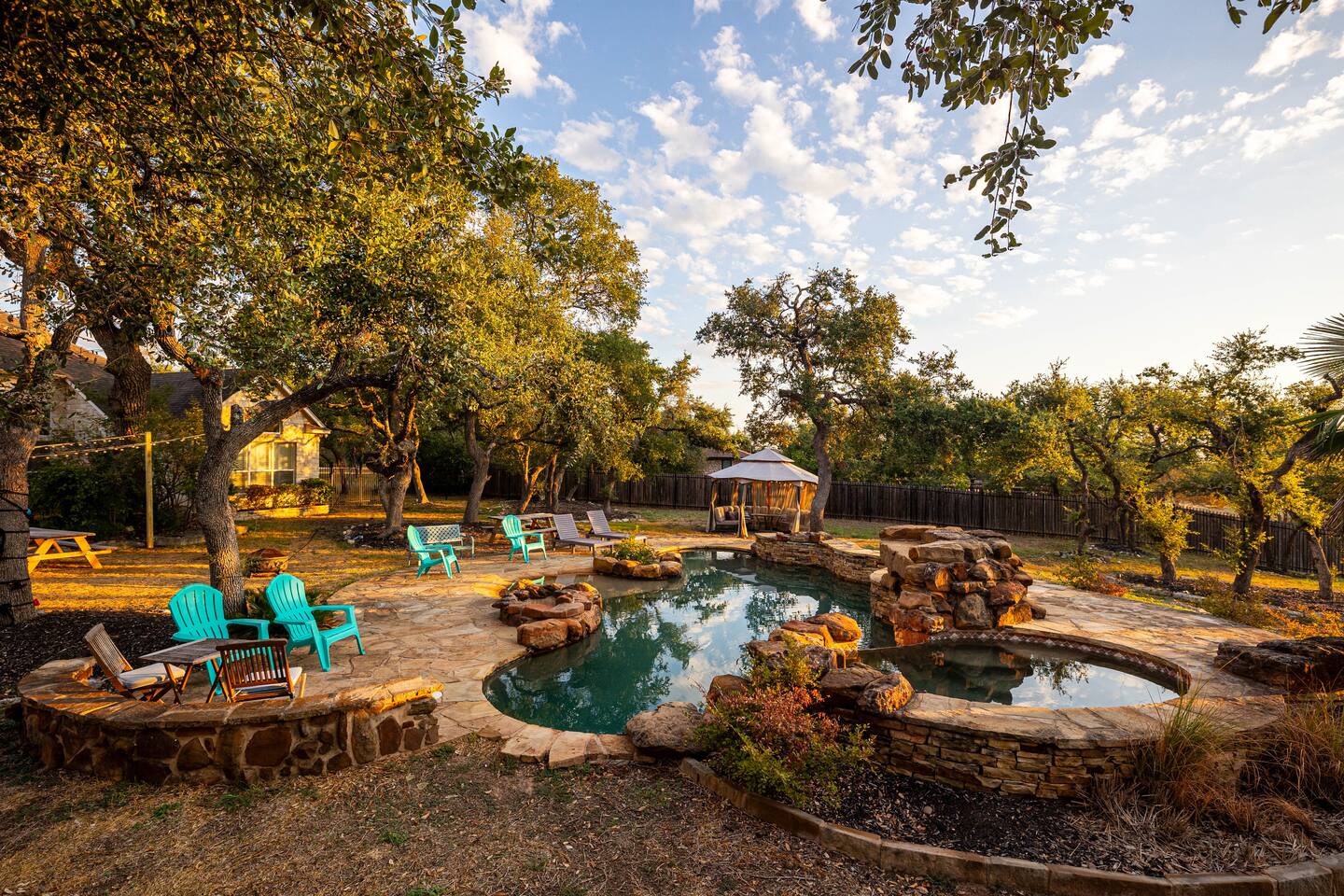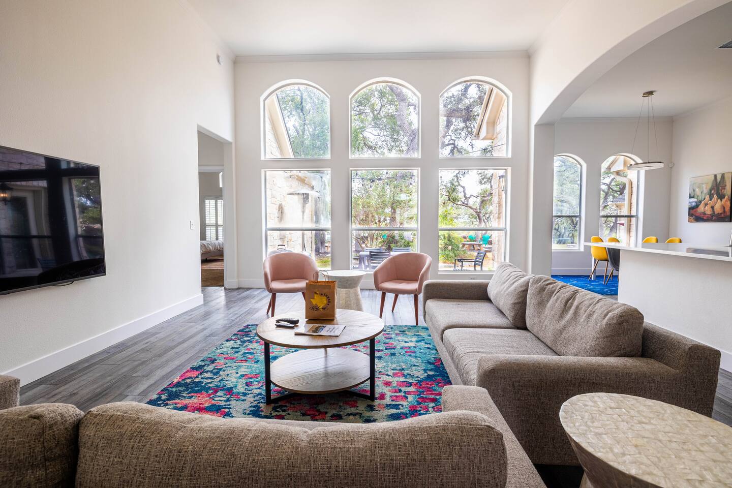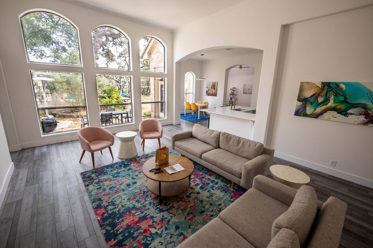 Spacious 4388 sqft home & Casita w/ resort-style pool on 2 acres. Perfect for family reunions & retreats. Having a large group shouldn’t mean that you have to cram into a small place OR split up in hotel rooms! This property has plenty of indoor & outdoor space! 15mn - Downtown 17mn - Airport 1mn - Grocery Store 12mn - Salt Lick BBQ, wineries, breweries, parks, restaurants... Comfortable for large groups: pool w/ waterfalls, huge backyard, BBQ grill, fire pit, large TVs, 2 full kitchens!!